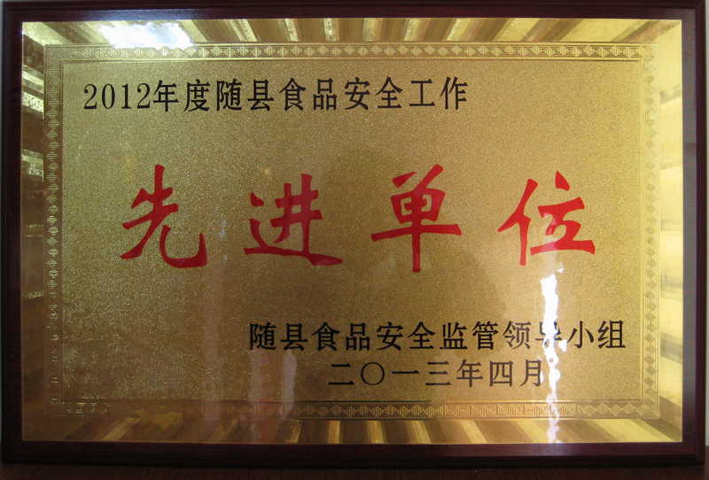 2013年4月我公司被授予2012年度隨縣食品安全工作先進(jìn)單位