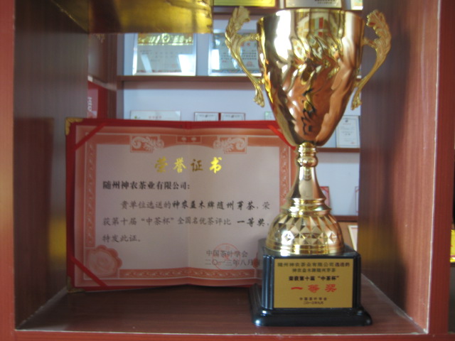 - 2013年8月,我公司選送的神農(nóng)益木牌隨州芽茶,榮獲第十屆“中茶杯”全國名優(yōu)茶評比一等獎(jiǎng)。