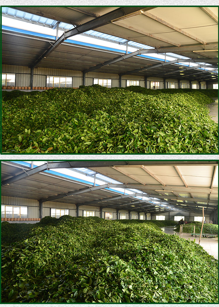- 送走了火紅的5月,迎來了充滿希望的6月,公司的綠碎茶也迎來了生產(chǎn)高峰期,下圖為神農(nóng)綠碎茶的鮮葉攤青車間一角: