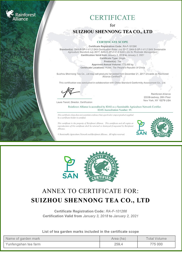 公司通過雨林聯(lián)盟認證