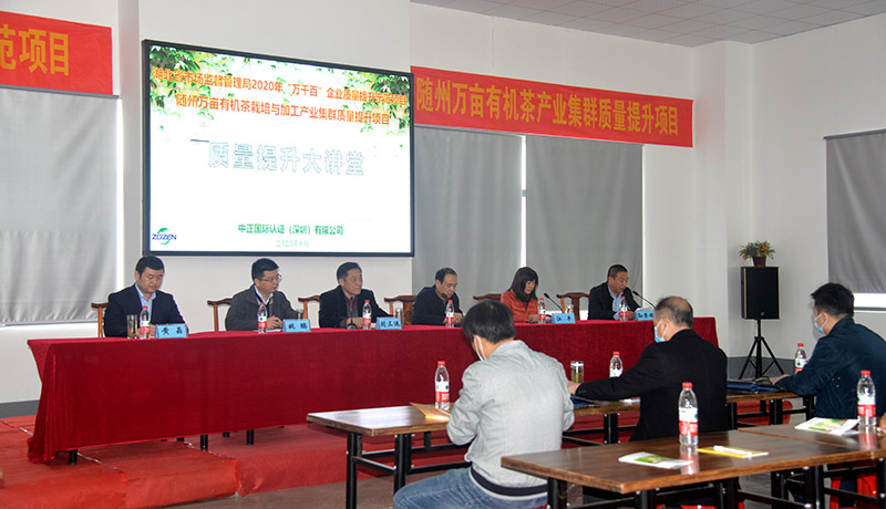 10月30日,隨州萬(wàn)畝有機(jī)茶栽培與加工產(chǎn)業(yè)質(zhì)量提升大講堂在隨州神農(nóng)茶業(yè)有限公司召開(kāi),湖北省市場(chǎng)監(jiān)督管理局劉局長(zhǎng)、隨州市市場(chǎng)監(jiān)督管理局江局長(zhǎng)出席項(xiàng)目召開(kāi)會(huì).