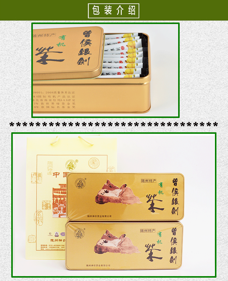 曾侯銀劍/隨州芽茶選料嚴格,工藝考究,采用清明前后單芽制成,其外形肥壯挺立,色澤光潤翠綠,湯色嫩綠明亮,滋味鮮醇清香爽口,2007年4月獲“信陽藍天玉葉杯金獎”,2007年7月第七屆“中茶杯”全國名優(yōu)茶評比獲特等獎,2007年11月日本第一屆世界綠茶杯評比榮獲金獎,2008年8月韓國第七屆國際名茶評比榮獲金獎,2022年7月第十一屆“中綠杯”評比榮獲金獎,2025年“華茗杯”四星推薦產品。