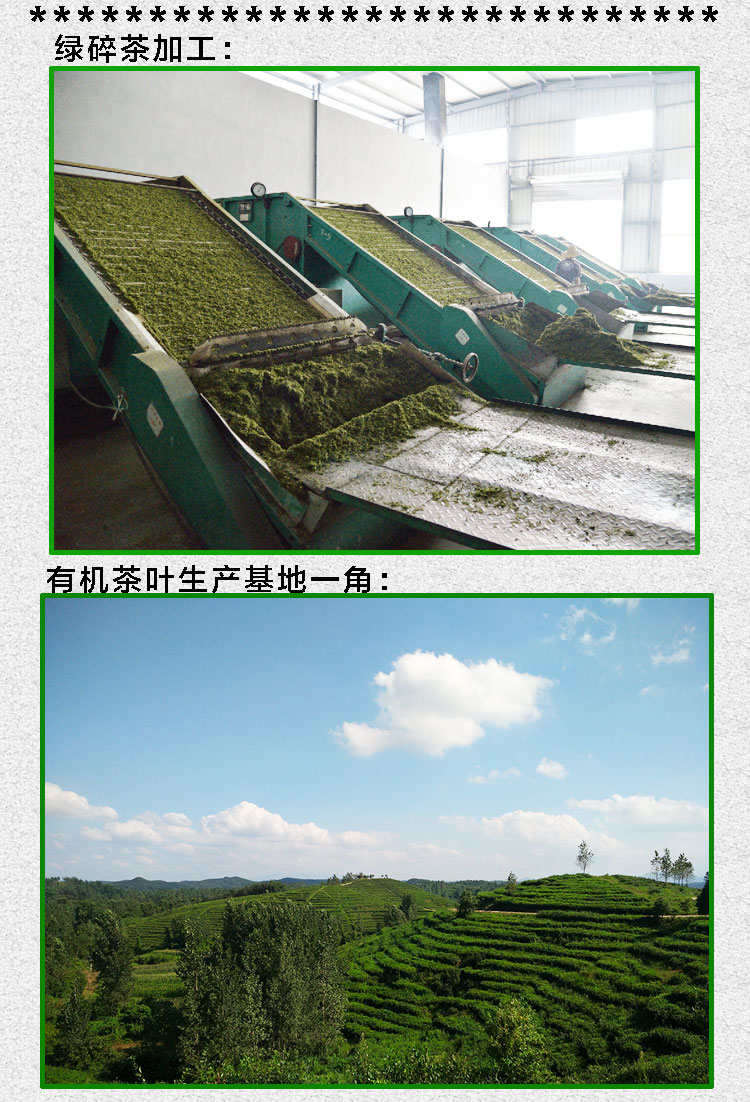 其特點是: 外形呈沙粒形顆粒狀、色澤綠潤、湯色鮮綠明亮、栗香持久、滋味濃醇。通過權威機構(gòu)檢測四百多項沒有農(nóng)藥殘留,理化衛(wèi)生指標均符合歐盟、美國、日本等有機食品要求標準,是各種保健茶、袋泡茶理想的茶葉原料。該產(chǎn)品可分為:有機、低農(nóng)、國標三種,具體價格可在線咨詢!